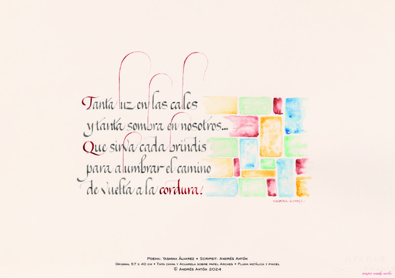 Con este poema de Yasmina Álvarez caligrafiado por Andrés Antón queremos haceros llegar nuestro mensaje para 2025.